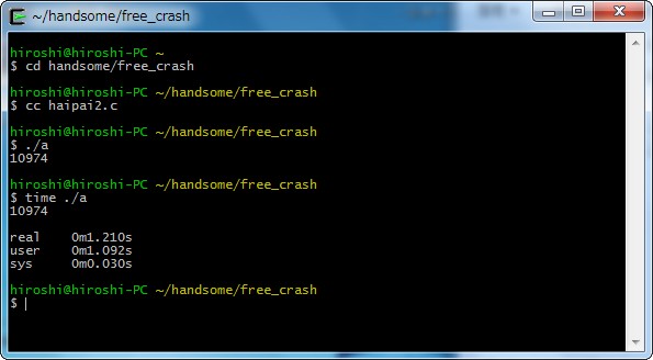 配牌を10万回とった結果。配牌に暗刻が10974回出来ました。配牌に暗刻が一つ含まれている確率はだいたい10.7%らしいのでそれなりに正しい結果になってそう。このプログラムだと試行回数を増やすとだいたい10.9%に収束するようです。