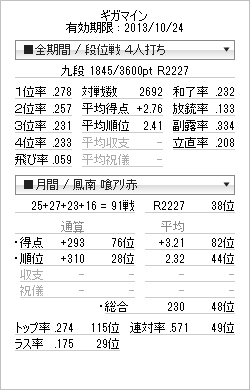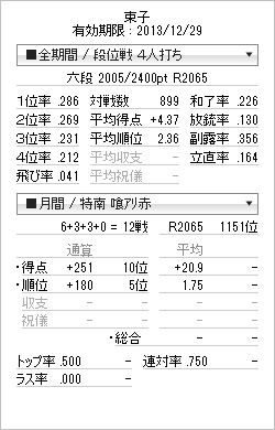 今回は、以前の昇段時と違ってきっちり実力でラス回避ができているような気がするので、まあ前回のように50戦で後段するようなことはないでしょう。(フラグ)